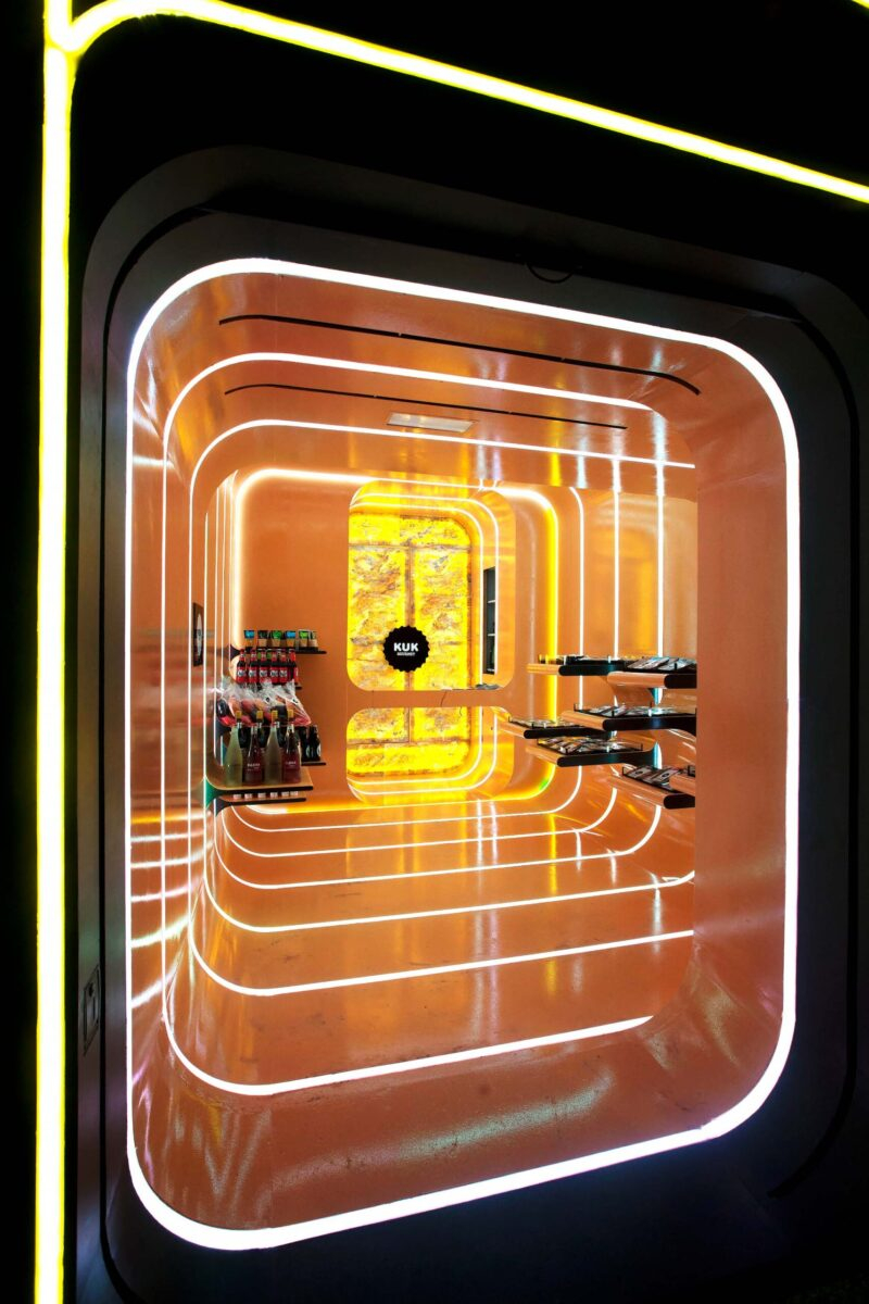 En pleno centro de Murcia, KUK Gourmet redefine la experiencia de compra con un espacio vanguardista que fusiona diseño, luz y gastronomía. El interior, de líneas envolventes y estética futurista, crea una atmósfera inmersiva donde cada detalle potencia la singularidad del producto.